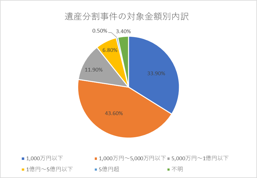 家庭裁判所の統計では、遺産分割でもめた案件の割合は次の通りです。