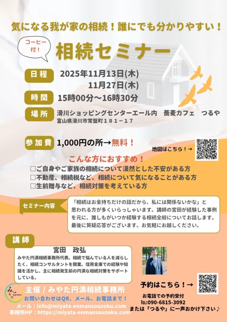 毎度人気の「そばカフェコラボ」で27日に滑川市のショッピングセンターエールで相続セミナーを開催します!お買い物ついでにでもどうぞ!